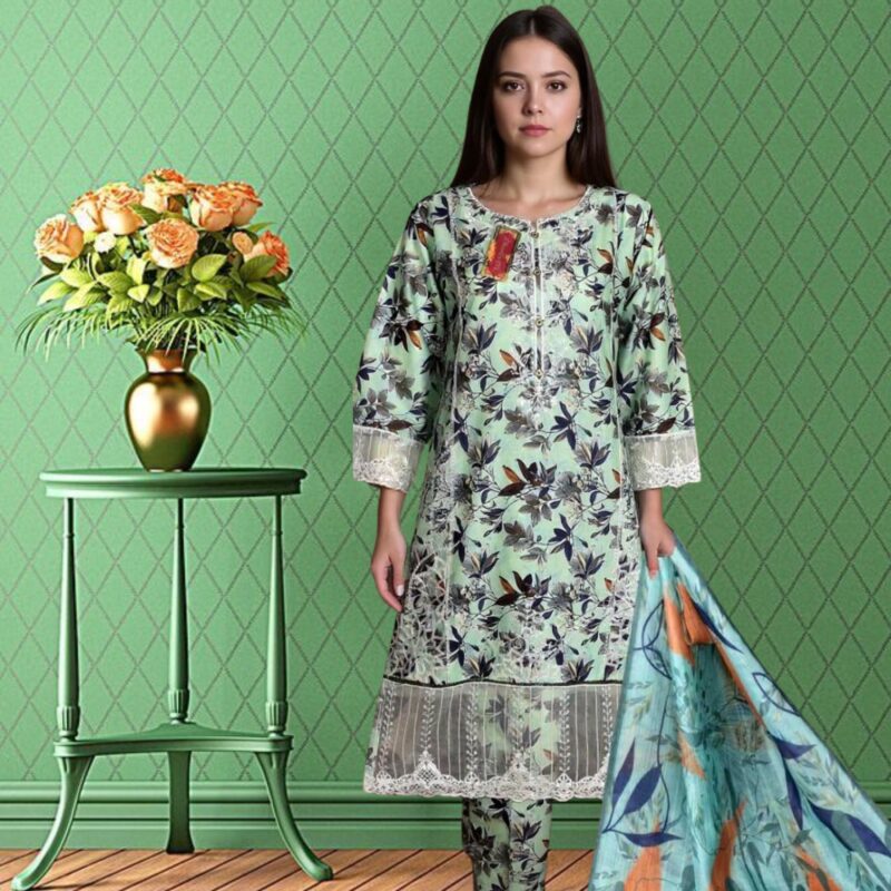 Stay cool and stylish with this beautifully printed 3-piece lawn suit. Includes a soft lawn shirt, matching printed dupatta, and trouser – perfect for casual summer wear.