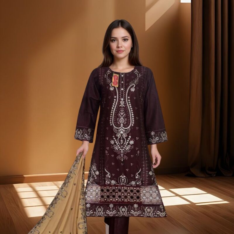 A perfectly stitched cotton 3-piece with a delicate chiffon dupatta — soft, stylish, and ready to wear wherever you go.
